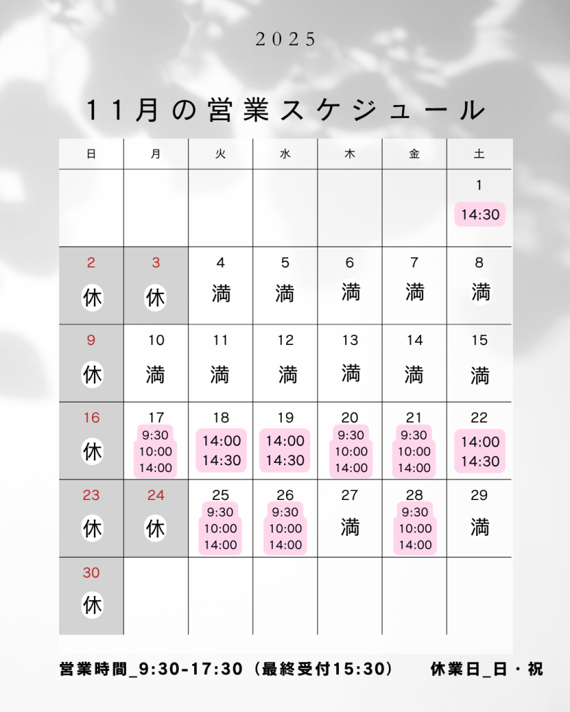 ご予約方法:ご予約フォームよりご希望の日時をご連絡ください。
